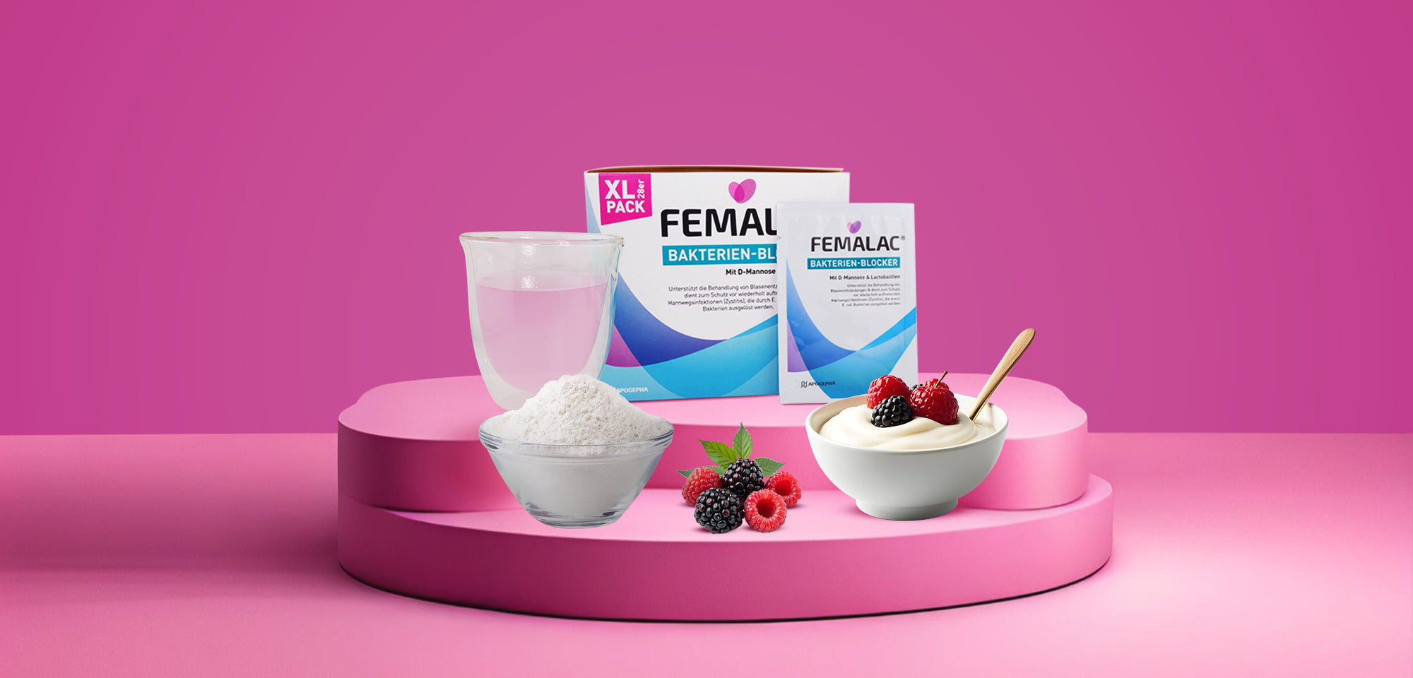 FEMALAC® Bakterien-Blocker dient zur Unterstützung der Behandlung von durch E. Coli Bakterien verursachten Harninfektionen in der Blase sowie zum Schutz vor wiederholt auftretenden Harnwegsinfektionen (Zystitis).