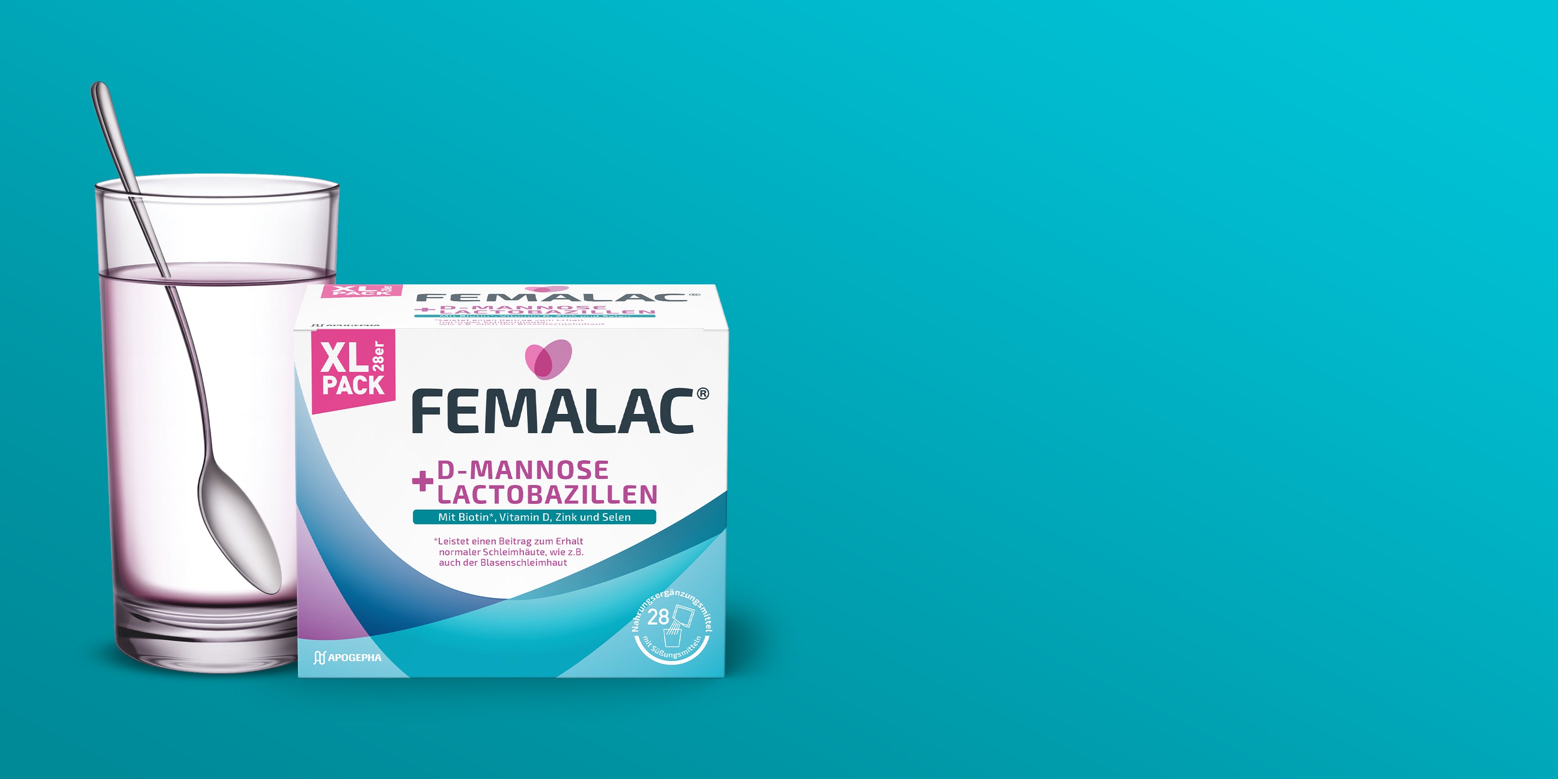 FEMALAC® ist ein Nahrungsergänzungsmittel, das entwickelt wurde, um Frauen gezielt zu unterstützen. Es kombiniert eine Duo-Aktiv-Formel aus D-Mannose und Lactobazillen mit einer Auswahl wichtiger Vitamine, Mineralstoffe und Spurenelemente.
